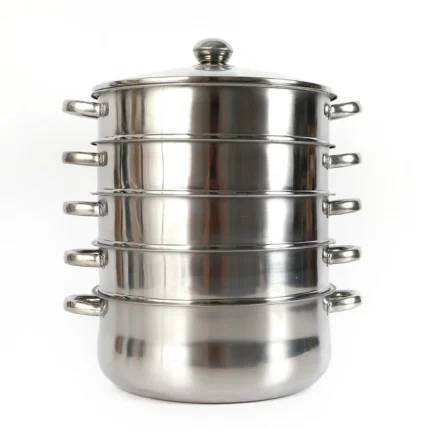 5-Tier Stainless Steel Steamer Pot Set – 26/28/30CM sizes for Versatile Cooking, Large Capacity Veggie & Food Steamer for Effici