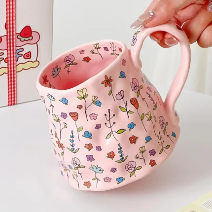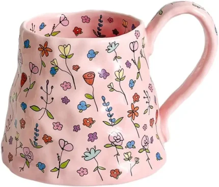 Ceramic Coffee Mug Cute Handmade Flowers Creative Mugs Design Printed Flowers Cup for Office and 18 oz/500 ml for Latte Tea Mil