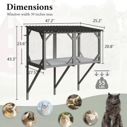 Cat Window Box, 47.2″ Catio Outdoor Cat Enclosure for Sunbathing, Napping & Overlooking, Sturdy Window Perch