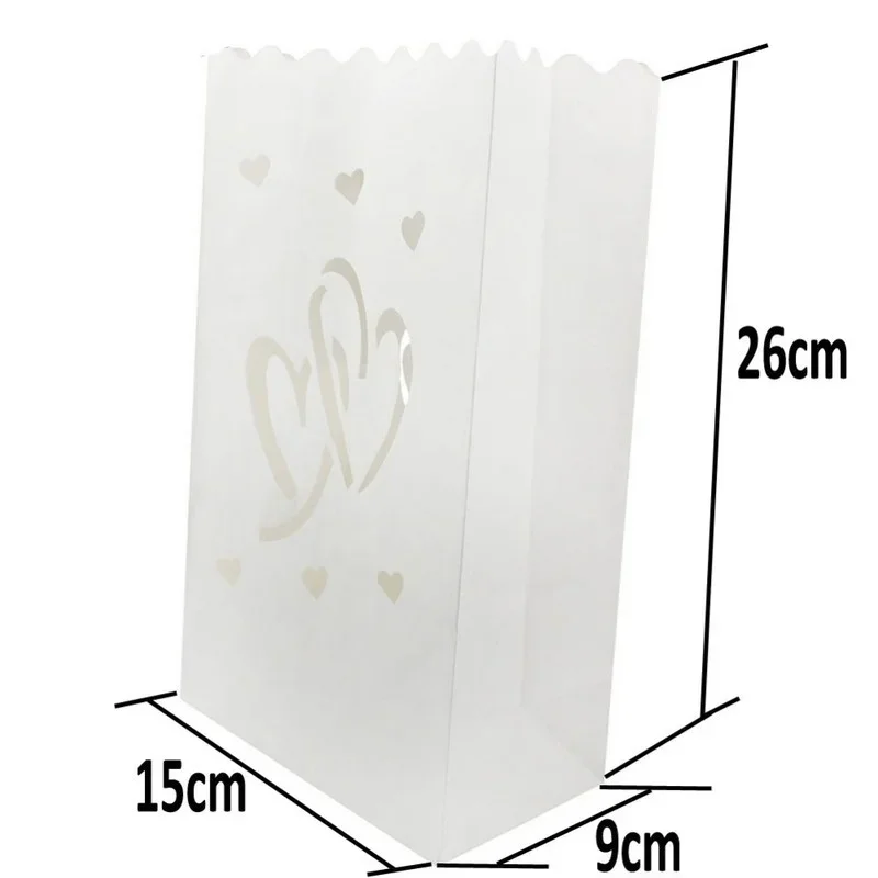 10Pcs Festival Lantern Heart Paper Lantern Candle Bag Lighting Candles for Wedding Christmas Event Party Supplies