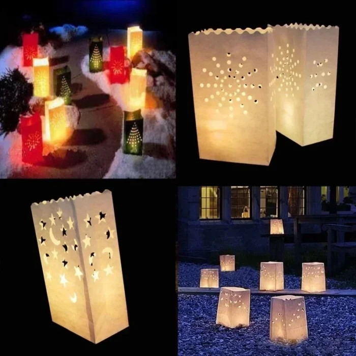 Candle Bag made by flame retardent kraft paper. This lights and lantern bag in festival, Such as Wedding, party, Birthday, Xmas, Halloween, Walk way, Street Party. Every nice evening decoration or outdoor decoration. It needs only a simple tea light to create a beautiful effect. Luminaire Candle Bags can be used very effectively for accent lighting or marking. Great for dining and entertaining outdoors, pathways, pools and tables.