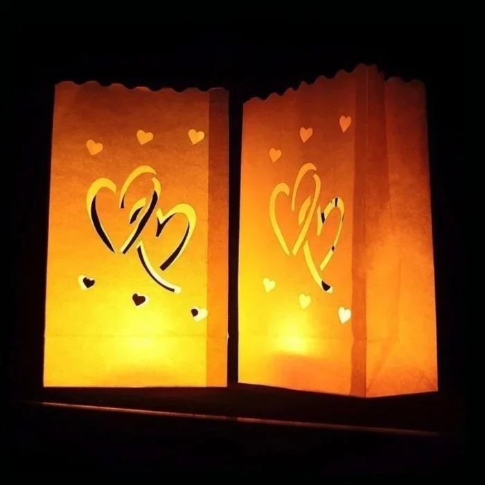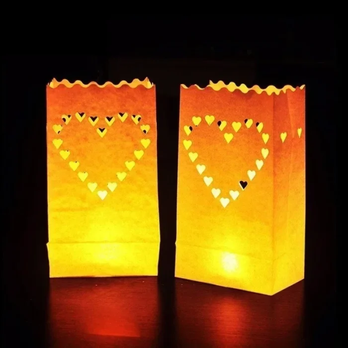 10Pcs Festival Lantern Heart Paper Lantern Candle Bag Lighting Candles for Wedding Christmas Event Party Supplies
