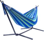 ONCLOUD Heavy Duty 550 LBS Double Hammock with Stand Included with Portable Carrying Bag, Upgraded 2 Person Hammock with Frame for Outdoors & Indoors, Series TDCTZ2 - Blue Green Stripe