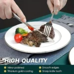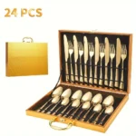 Be the first to review “24pcs Elegant Stainless Steel Black Flatware Set, Classic Knife, Fork Spoon Gift Set Mirror Polish Gold Cutlery Dishwasher Saf” Cancel reply