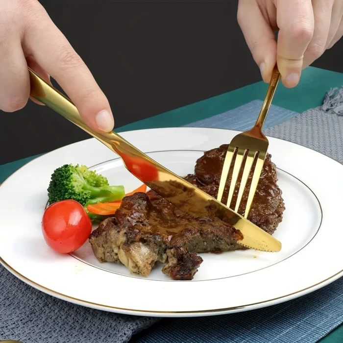 Be the first to review “24pcs Elegant Stainless Steel Black Flatware Set, Classic Knife, Fork Spoon Gift Set Mirror Polish Gold Cutlery Dishwasher Saf” Cancel reply