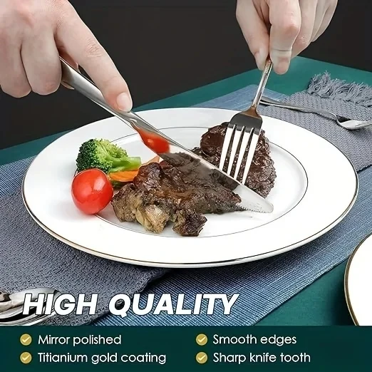 24pcs Elegant Stainless Steel Black Flatware Set, Classic Knife, Fork Spoon Gift Set Mirror Polish Gold Cutlery Dishwasher Saf