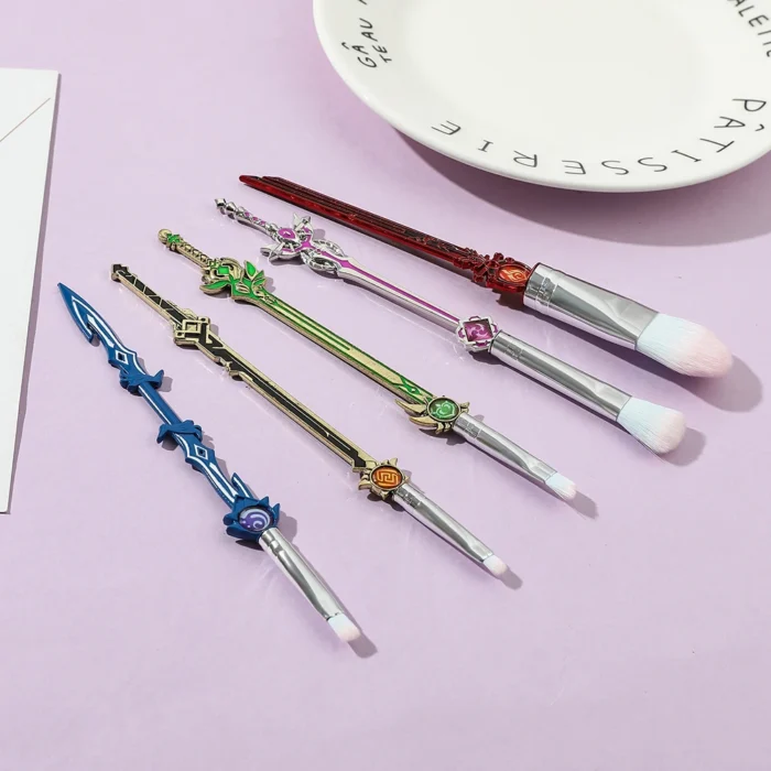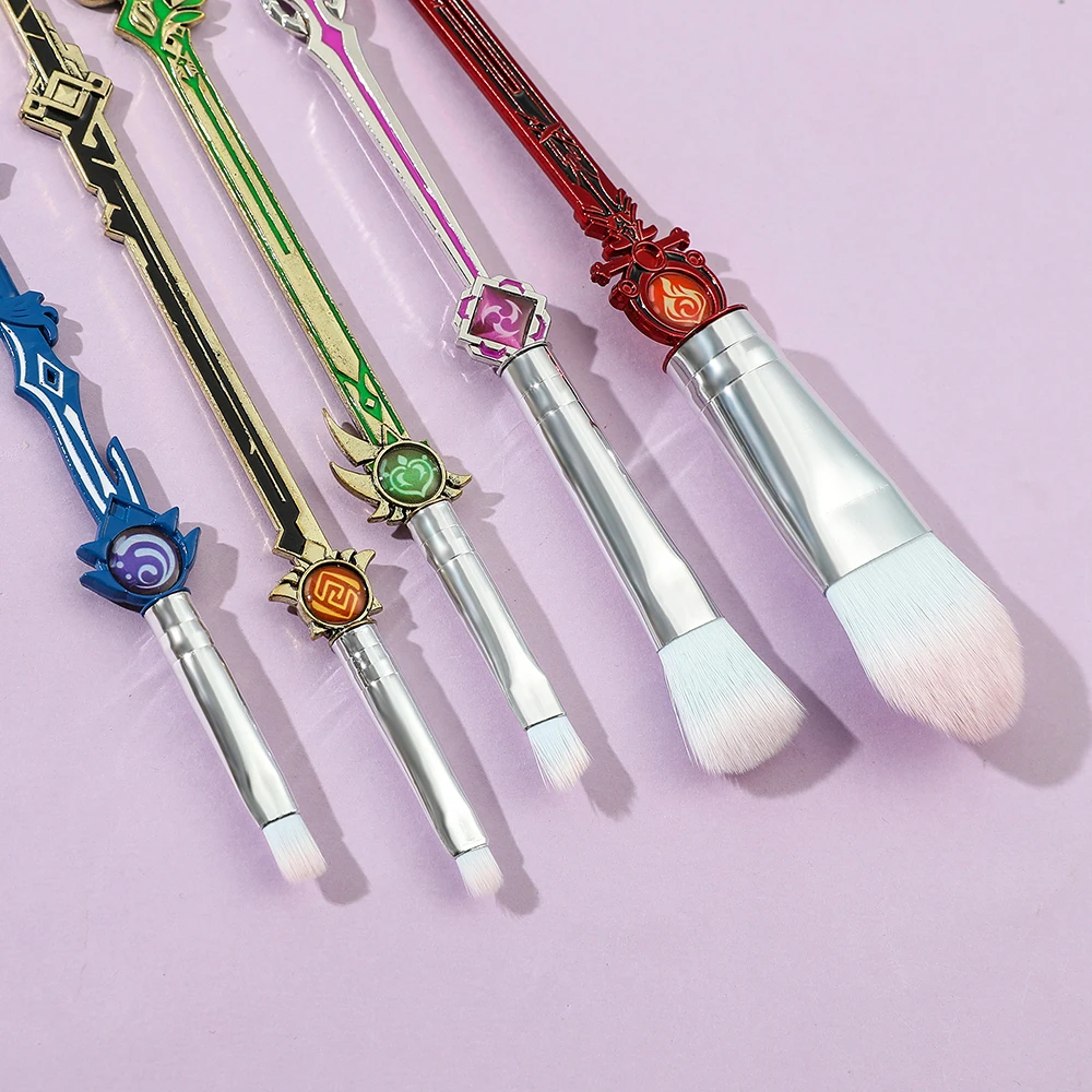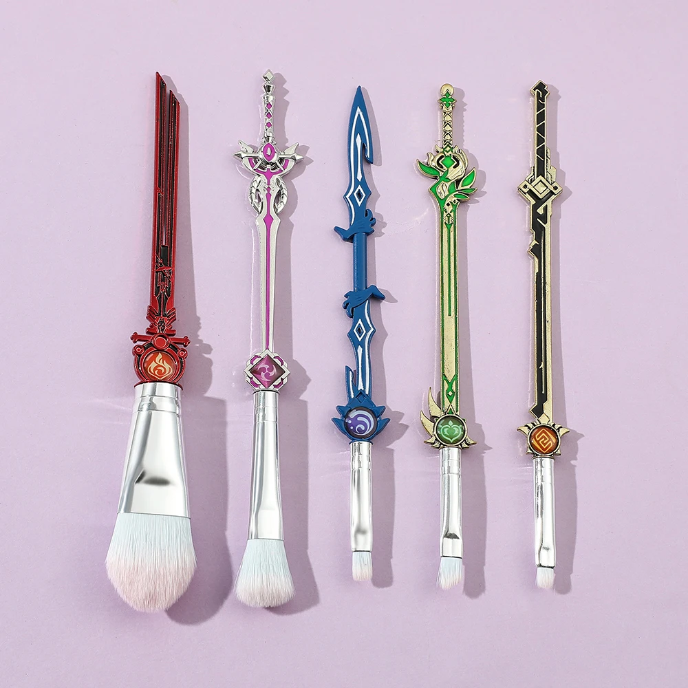 5Pcs Genshin Impact Make Up Brush Set Sword Shape Foundation Concealer Brush Eye Shadow Brush Cosmetic Beauty Tools