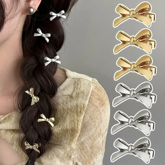 6 Pieces of Women’s New Golden Bow Mini Hairpins, Sweet and Cool Girl Bangs Hairpins and Hair Accessories