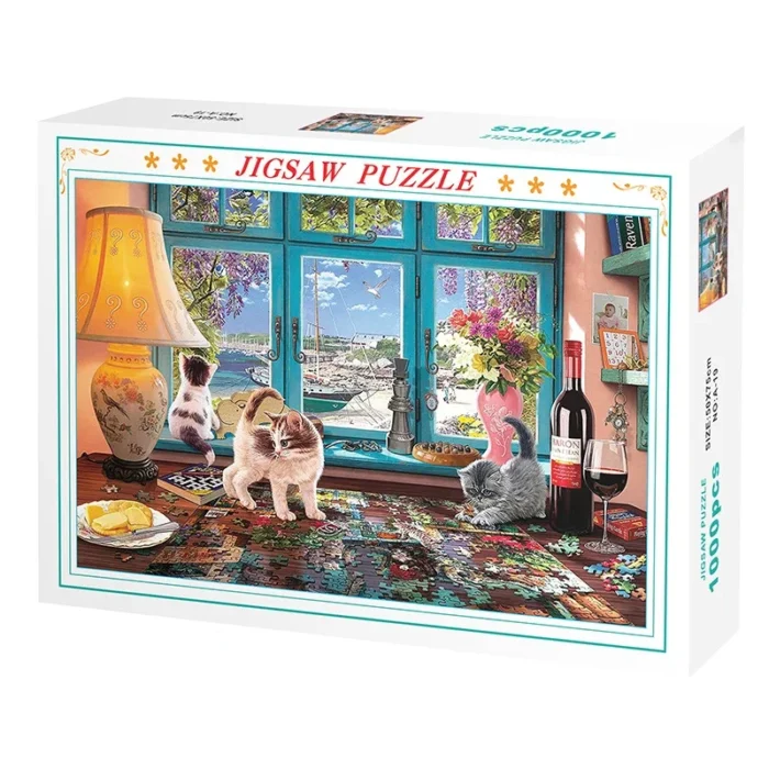 75*50cm Adult Paper Jigsaw Puzzle 1000PCS Bay Window Cat Animal Adults Stress Relief Children Educational Entertainment Toy Gift