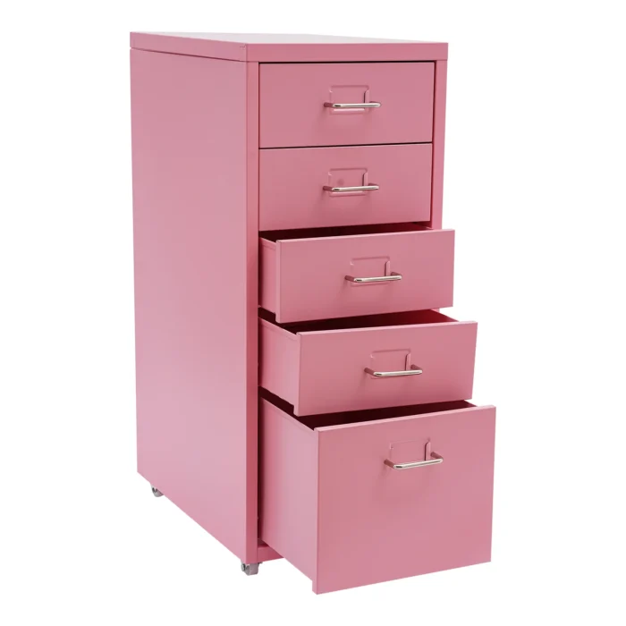 Aluminum Alloy 5-Drawer Storage Cabinet Pink Filing Storage Organizer Cabinet for Office Home Bedroom
