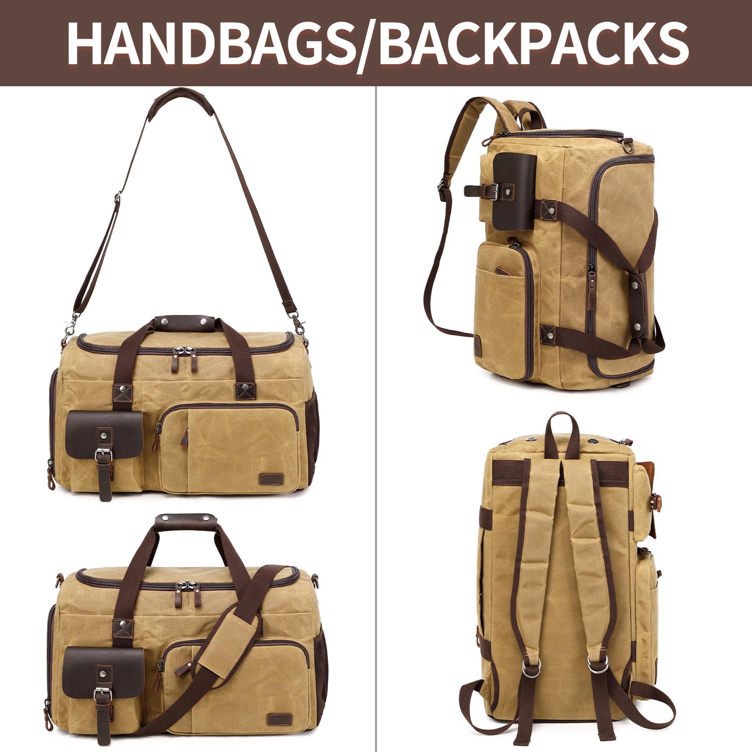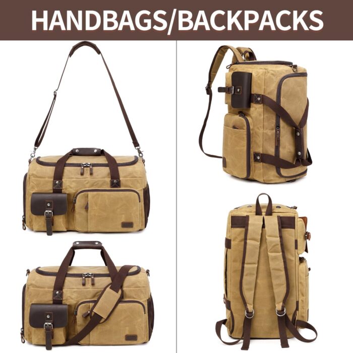 - 【Waxed Canvas Material】: This travel duffel bag is made of waxed canvas and genuine leather materail. The high-density waxed canvas material allows for heavy duty, daily use. International travel or take it with you on a daily basis, to the edge of the world.