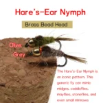 Bimoo 10PCS Classic #14 Brass Bead Weighted Hare’s Ear Fly Trout Fishing Wet / Nymph Fly Olive Grey