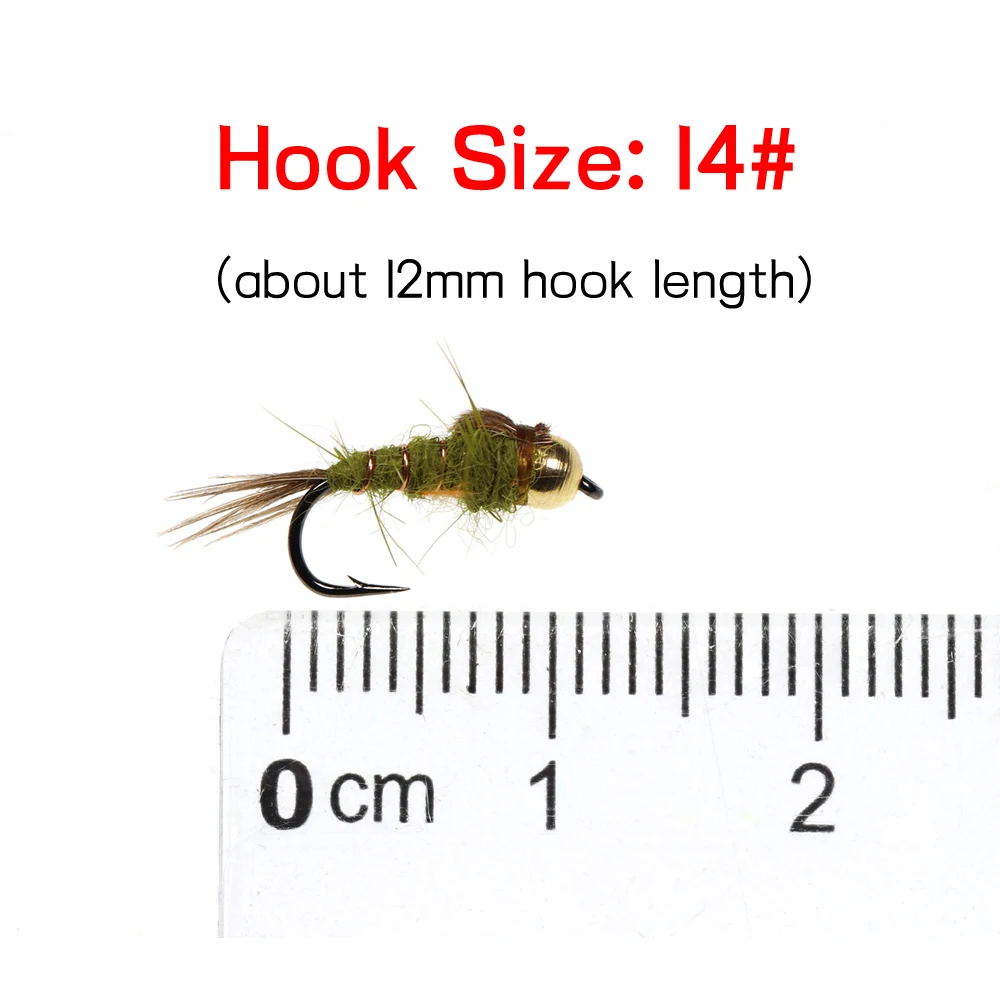 Bimoo 10PCS Classic #14 Brass Bead Weighted Hare’s Ear Fly Trout Fishing Wet / Nymph Fly Lure Bait Olive Grey