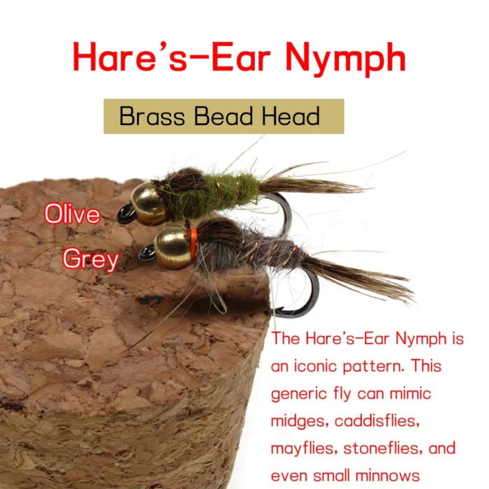 THE HARE’S EAR NYMPH IS AN ICONIC PATTERN It is very “buggy” and imitates many food sources found in many waters. By varying the size, color, and texture of dubbing, and making modifications such as adding a soft hackle, this generic fly can mimic midges, caddisflies, mayflies, stoneflies, and even small minnows.