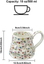 Ceramic Coffee Mug Cute Handmade Flowers Creative Mugs Design Printed Flowers Cup for Office and 18 oz/500 ml for Latte Tea Mil