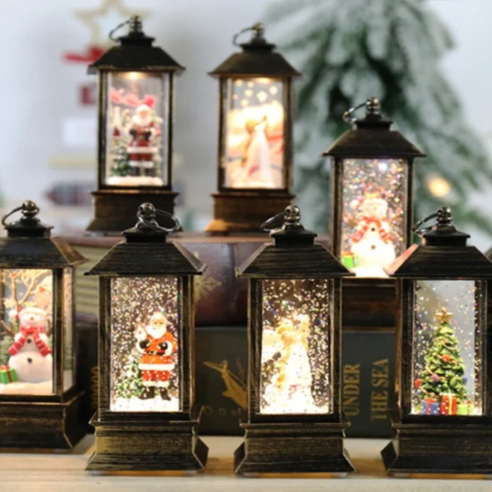 Christmas Snow Lantern Battery Operated LED Light Water Glittering Santa Snowman Hanging Night Lamp Holiday Decor
