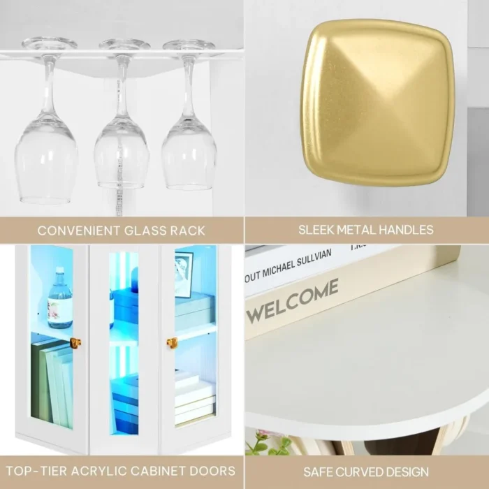 - Durability Meets Safety: Crafted from engineered wood, this corner bar cabinet withstands daily use, while the curved angle finish ensures safety. The included tip-restraint kits provide extra stability, and clear, labeled parts make assembly a breeze