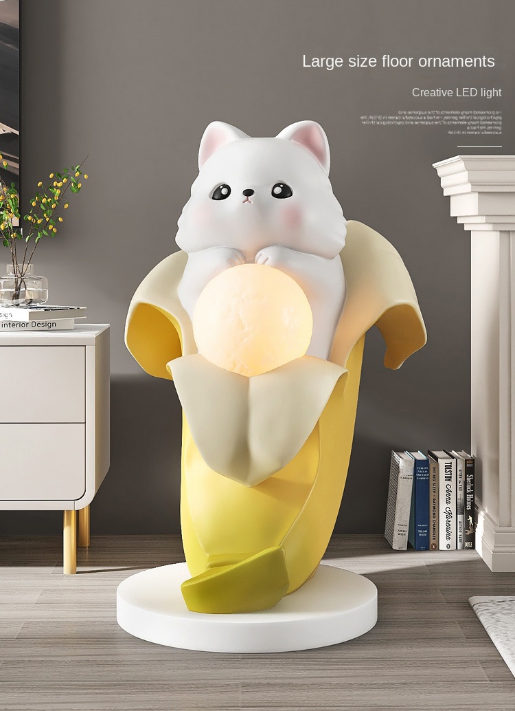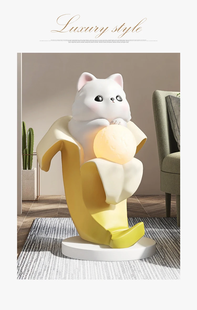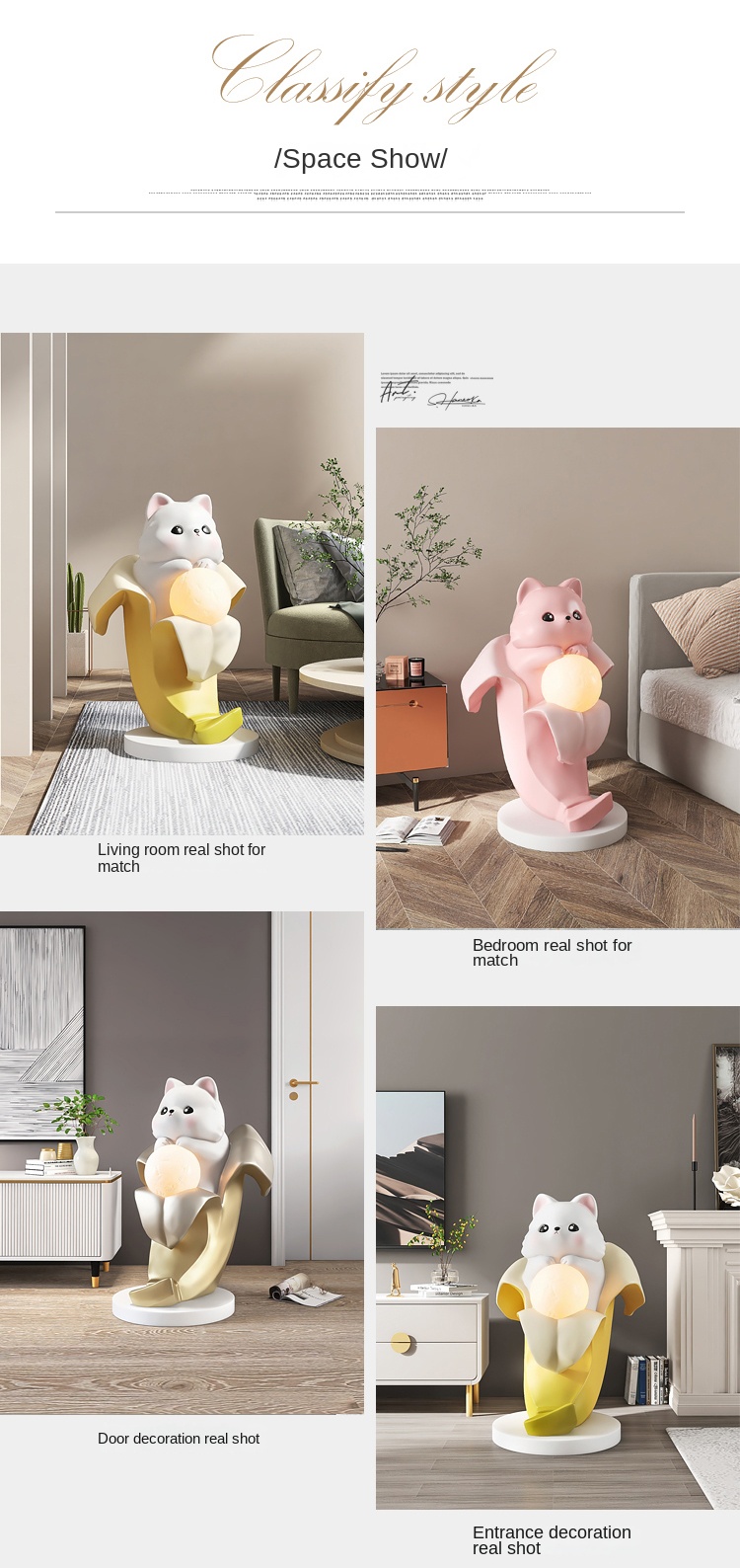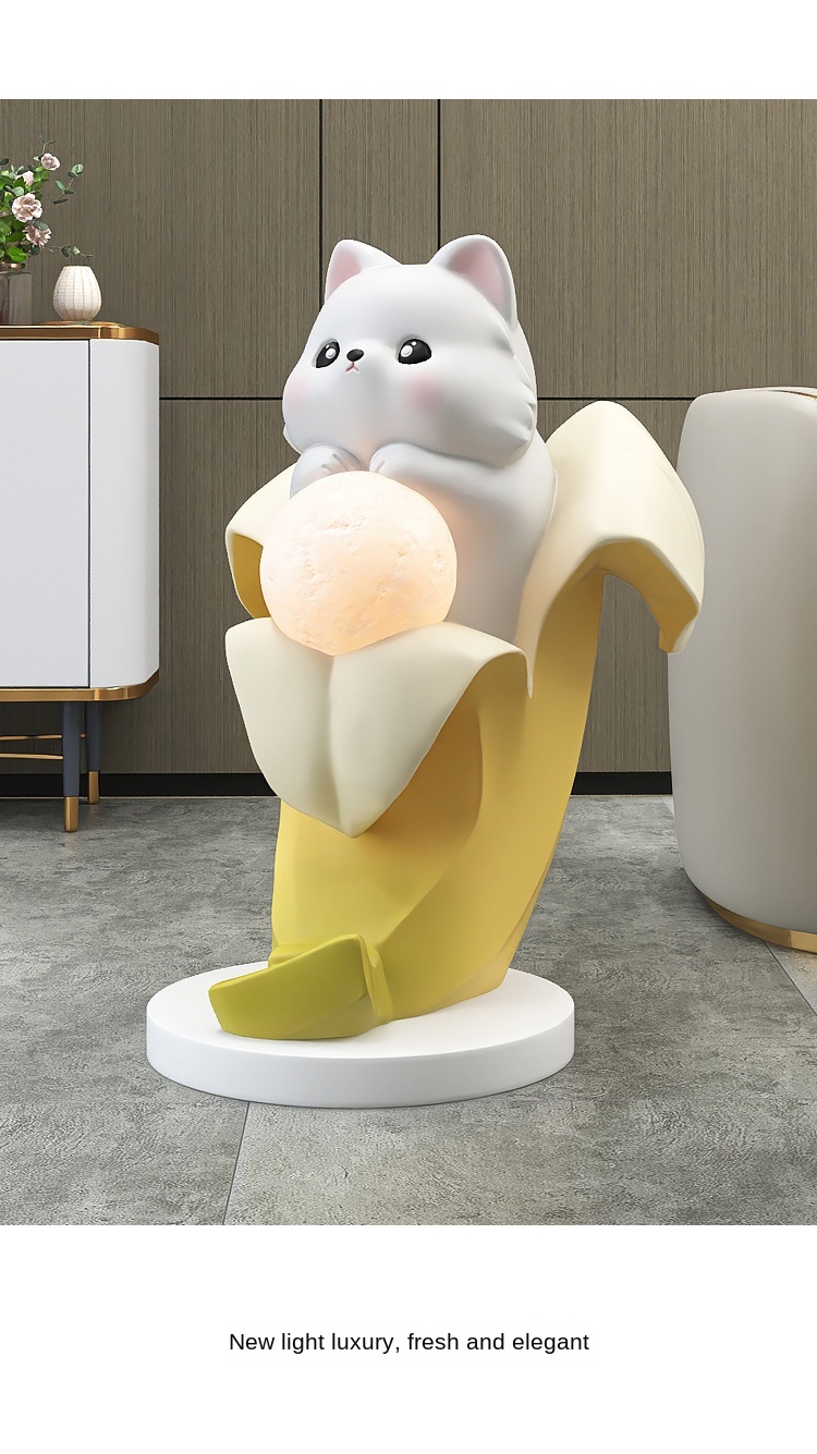 Creative Banana Cat Large Floor Decorations, FRP LED Lamp, Ornaments, Sculptures, Home Decor Statues, Living Room Accessories