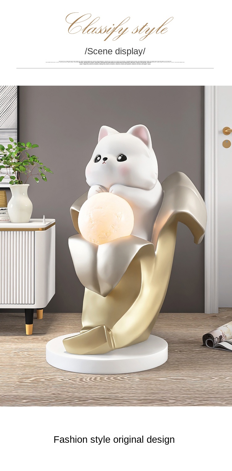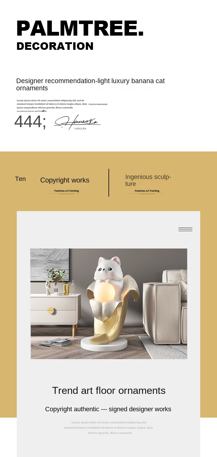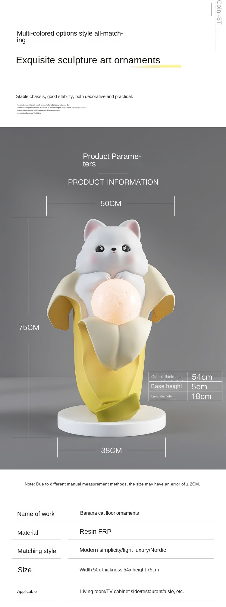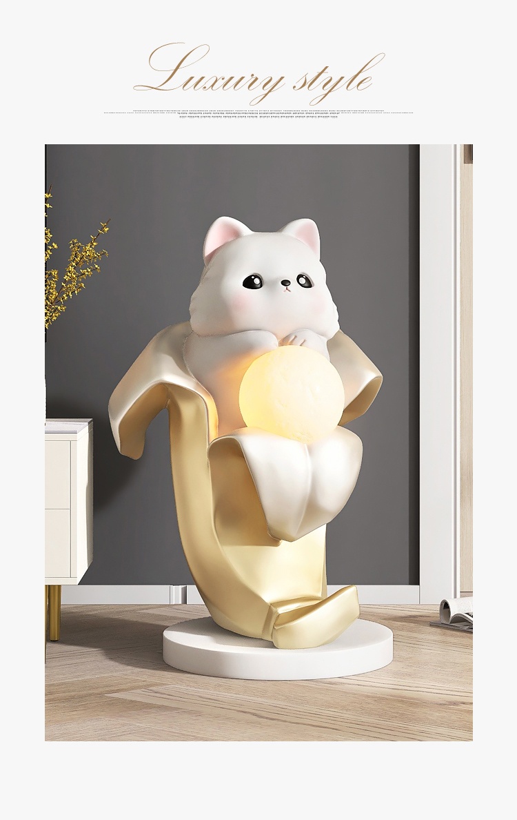 Creative Banana Cat Large Floor Decorations, FRP LED Lamp, Ornaments, Sculptures, Home Decor Statues, Living Room Accessories