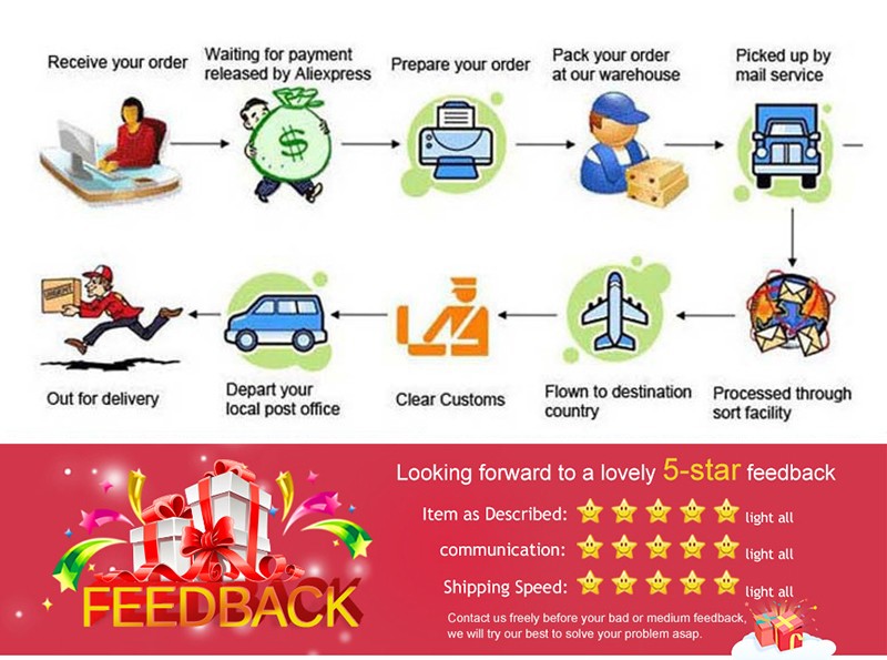 6. If you have not received your shipment within the period, please contact us. We will track the shipment and get back to you as soon as possible with a reply. Our goal is customer satisfaction!