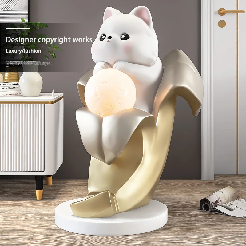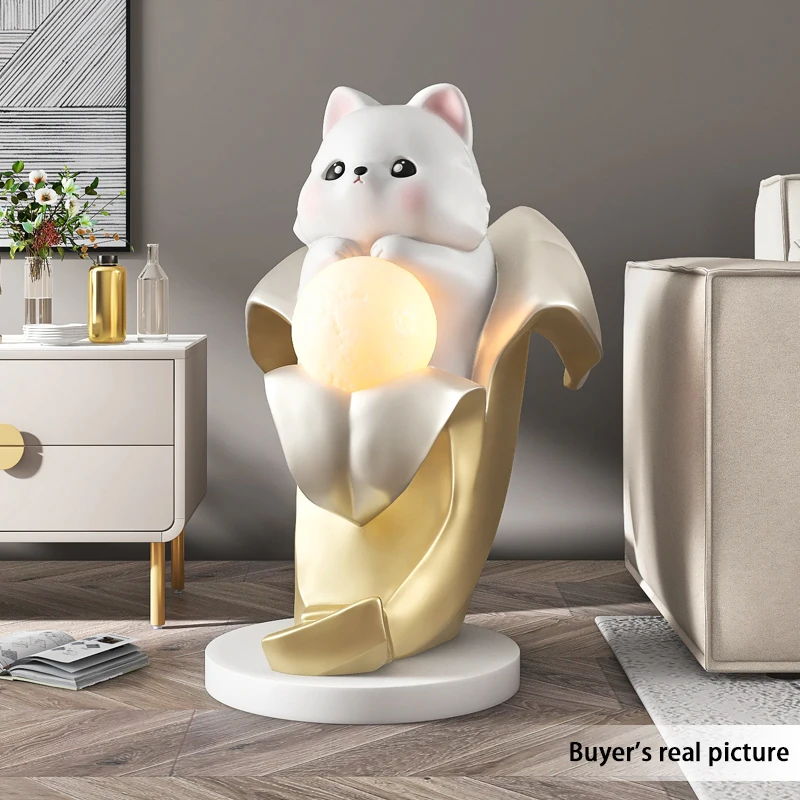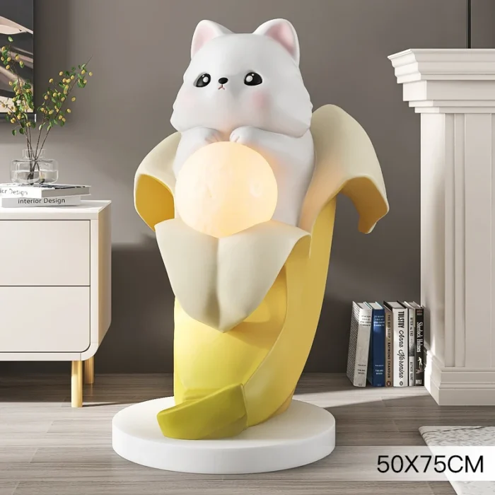 Creative Banana Cat Large Floor Decorations, FRP LED Lamp, Ornaments, Sculptures, Home Decor Statues, Living Room Accessories