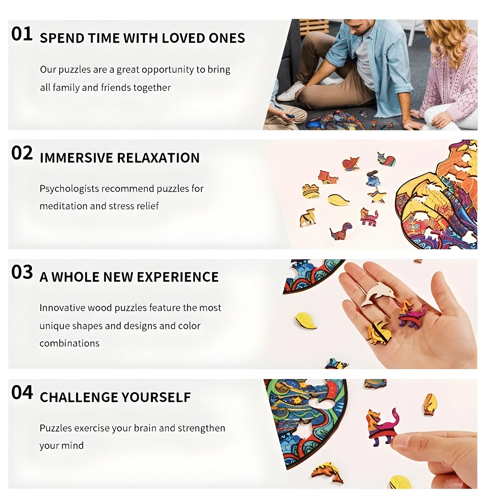 Dinosaur Wooden Jigsaw Puzzles Art, Unique Animal Shaped Pieces Stress Relieve Toys, DIY Leisure Game for Family Game Home Decor
