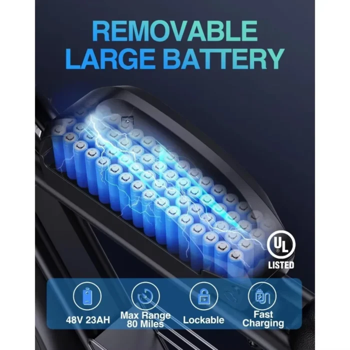 - 【EXTENDED RANGE】 – The electric dirt bike for adults comes with a removable 48V/23Ah battery. It can be quickly charged in 4-6 hours and has a longer lifespan. With a full charge, it can cover a range of 80 miles(assisted riding 65-80 mile and throttle mode 40-55 mile),allowing you to go further on your journeys. The removable battery also offers convenience as you can easily bring it home or to the office for recharging.