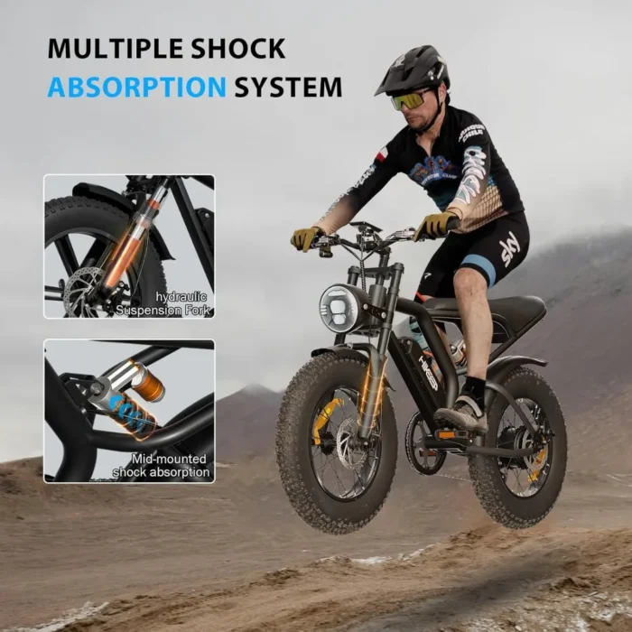 2 Seater Electric Bike for Adults,48V 15AH Removable Battery Ebike 20″ x 4.0 Fat Tire Beach Mountain Commuting Electric Bicycles