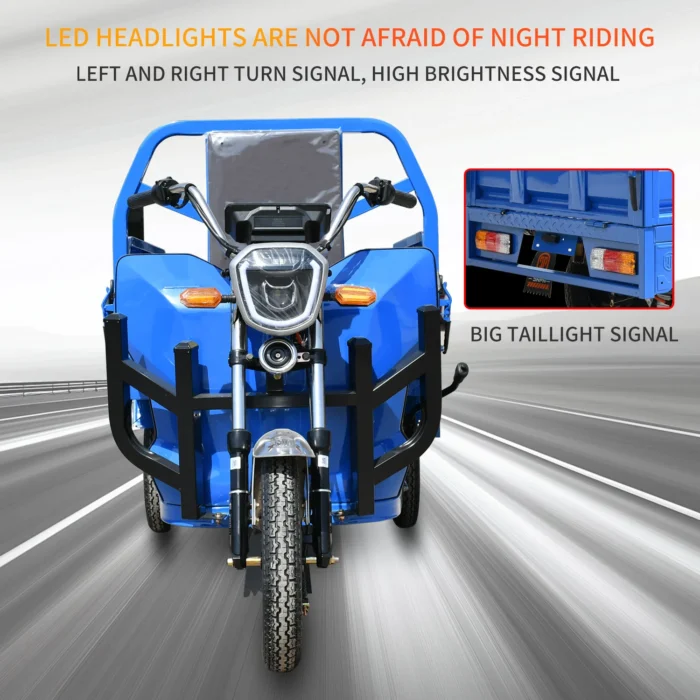 • 【HIGH CONFIGURATION】:The front end is equipped with LED lighting headlights, brake lights, and powerful headlights, providing excellent visibility. The electric tricycle is also equipped with anti-skid control and reverse indicator lights.
