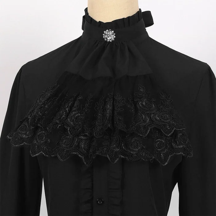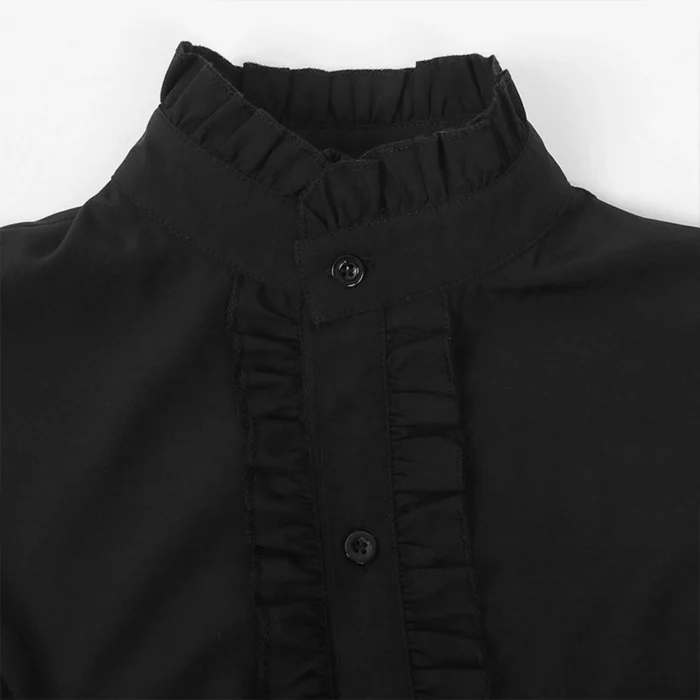 Be the first to review “Elegant French Style Solid Shirt For Women Stand Flare Sleeve Lace Embroidery Ruffles Bandage Design Gothic Black Shirts Top”