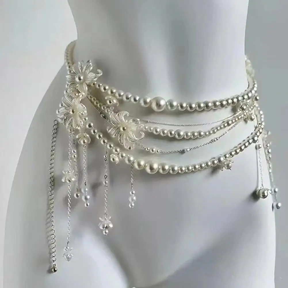 Stylish Multilayer Pearl Waist Chain Belt for Women – Y2K Retro Body Jewelry for Parties & Casual Outfits