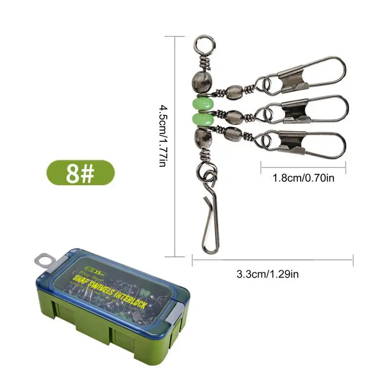 Fishing Lure Snap Clips 15X Shrimp Fishing Lock Snap Swivels Five-way Lighted Bead Swivel Interlocks With Box For Fishing Rods