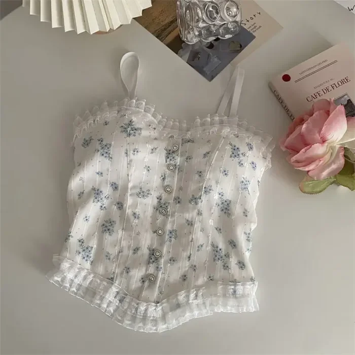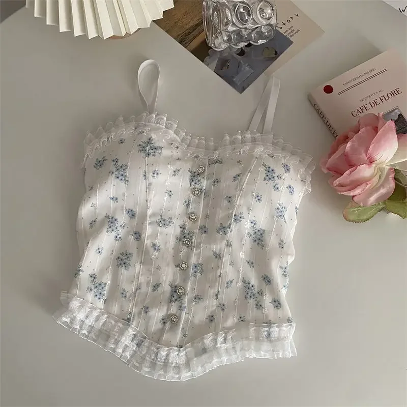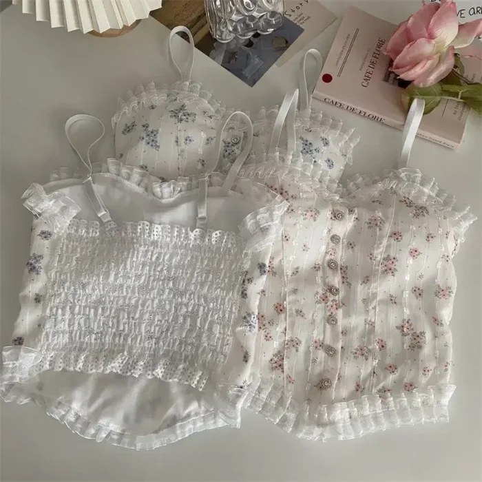 Floral Tube Tops French Wood Ear-hem Camisole Women’s Breathable Lace Tank Tops Back-beautiful Underwear for Summer
