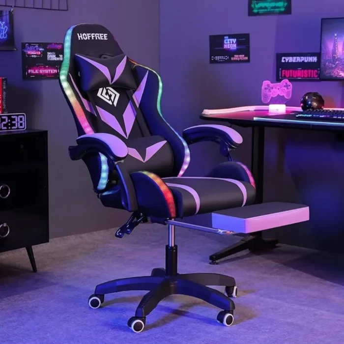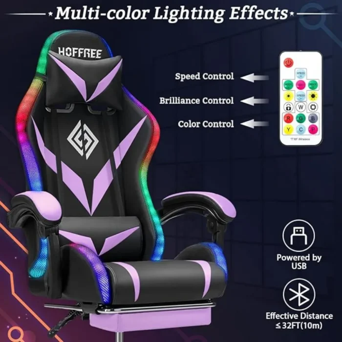 【Colorful RGB LED Lights】Designed with LED flashing lights on the back and the edge of the seat, you can easily adjust multiple lighting modes and brightness, creating a more dynamic feel in your gaming room while playing