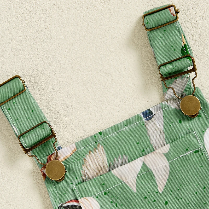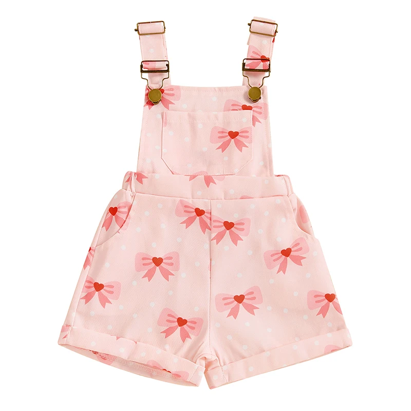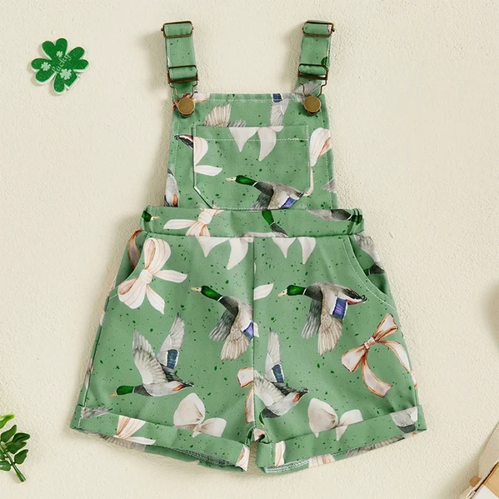 Little Girls Overalls Shorts Duck/Bunny/Bow Print Sleeveless Square Neck Suspender Jumpsuit Romper