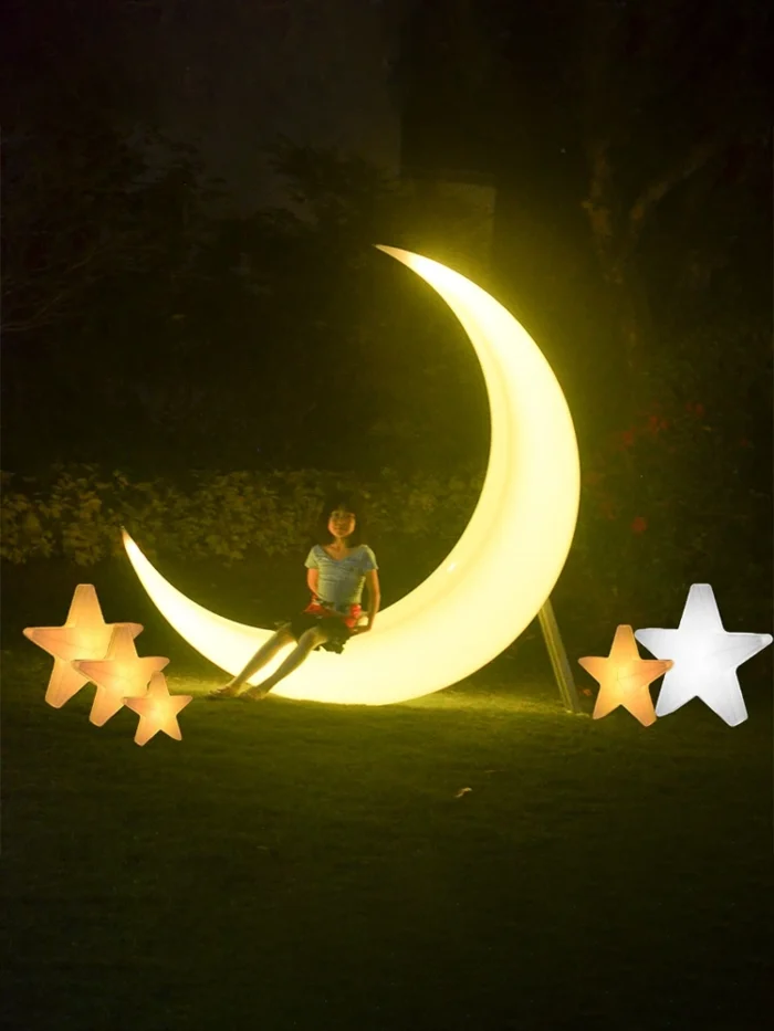 Glowing moon lamp chair outdoor courtyard decoration landscape floor-standing bed and breakfast star Internet celebrity crescent