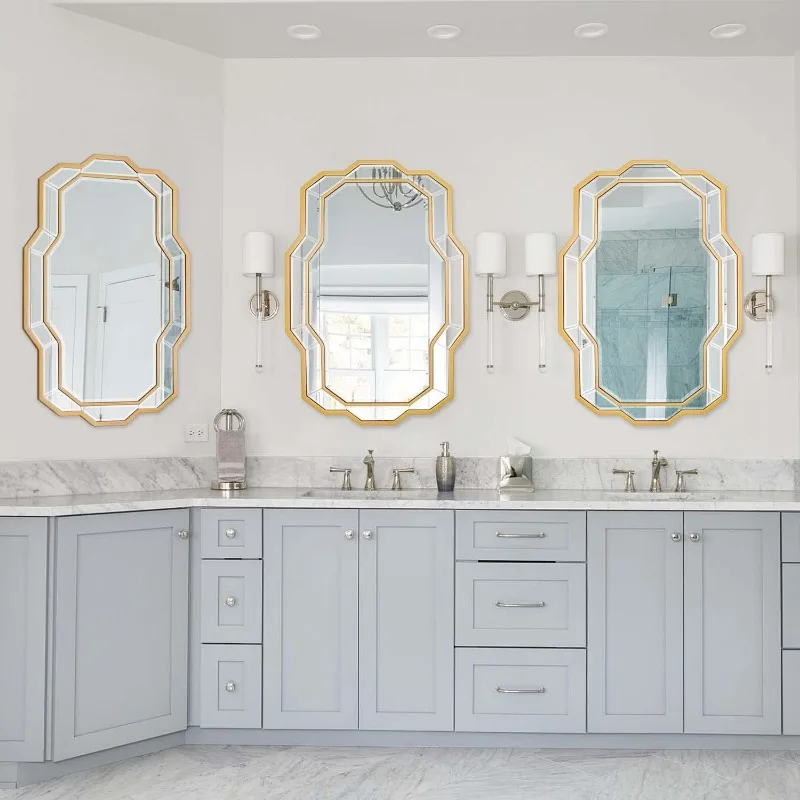 Gold Mirrors for Wall Decor, Large Living Room Mirror with Beveled Glass, Modern Decorative Mirror for Bathroom, Entryway, Dinin