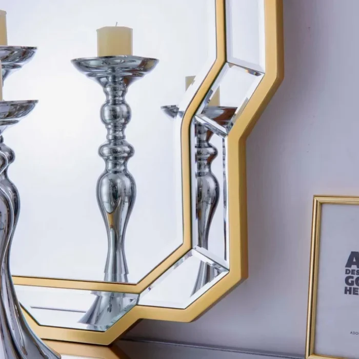 - 【Beveled Glass】This gorgeous mirror is finish by glass panels with beveled edge. When light shines on surface, it reflects of different images to grabs people’s attention and brings vigor to life.