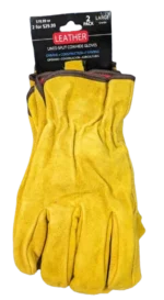 Split cowhide leather gloves lined for comfort, durable protection in driving, construction, and farming. Large size, 2-pack heavy-duty work gloves.