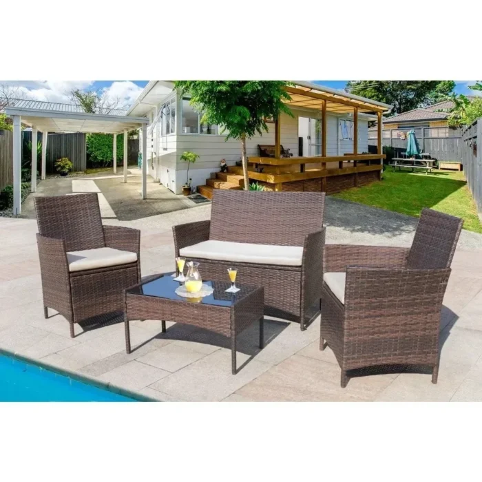 Outdoor Indoor Use Backyard Porch Garden Poolside Balcony Sets Clearance Brown and Beige 4 Pieces Furniture furniture