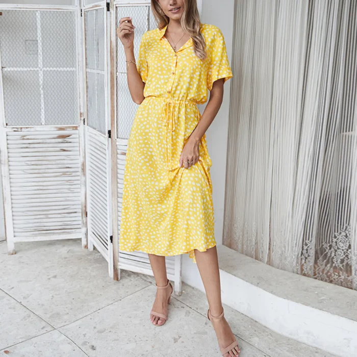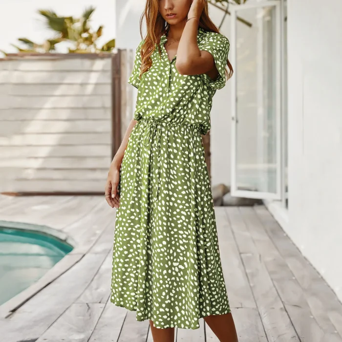 Be the first to review “Summer Dresses Women Summer Polka Dot Printing Dresses With Buttons Short Sleeves Drawstring High Waist Dress Vestidos 2023”