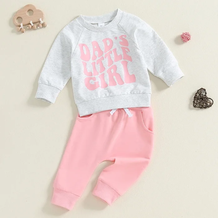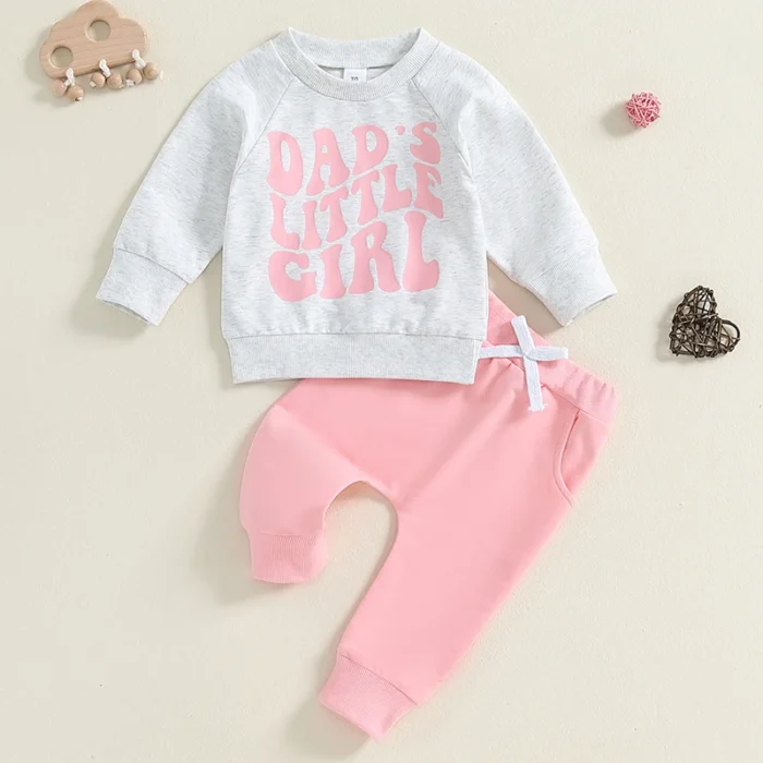 Baby Girl 2Pcs Fall Outfits Long Sleeve Sweatshirt + Pocket Pants Set Toddler Warm Clothes