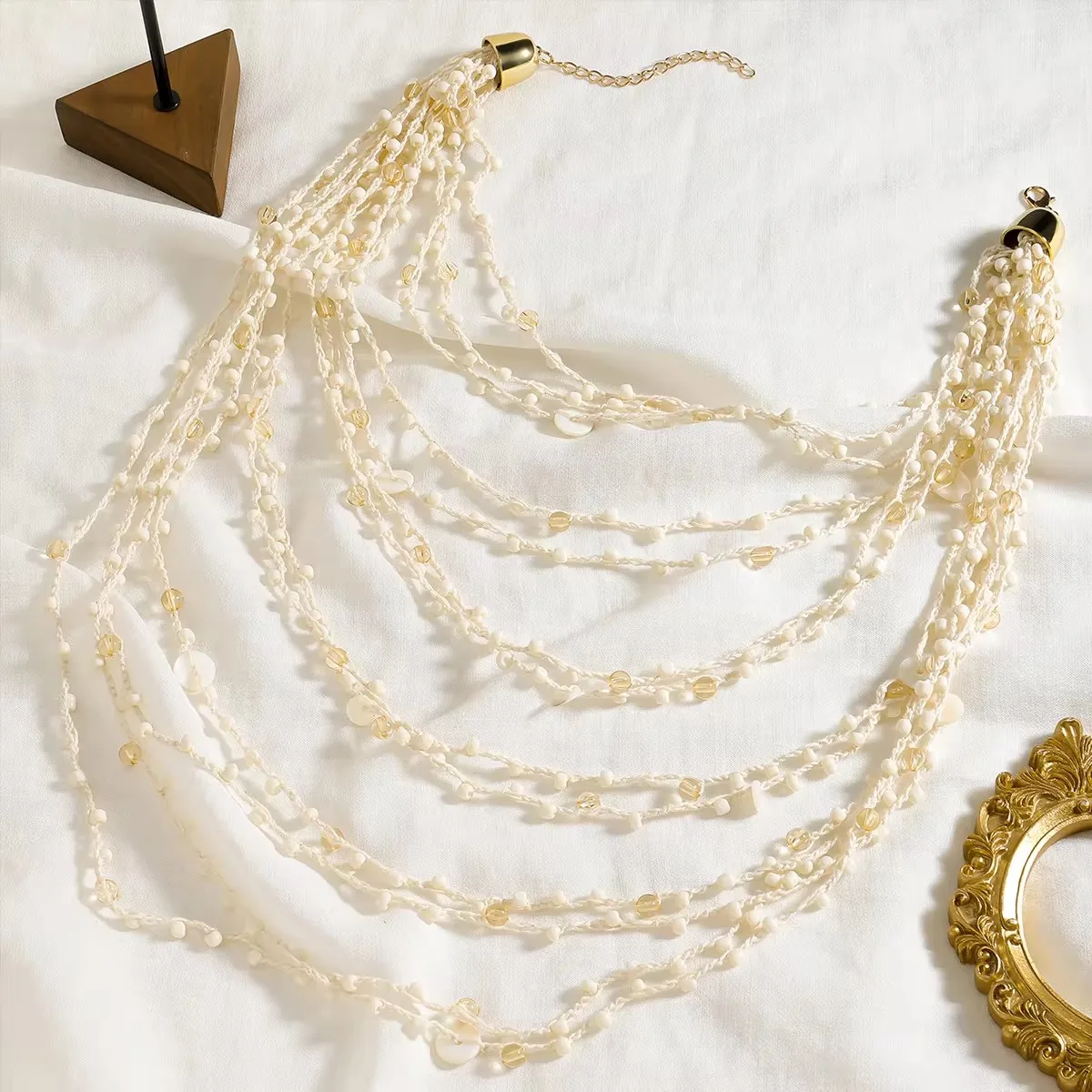 Vedawas Bohemian Handmade Beaded Rhinestones Multilayer Necklace,Elegant Vacation Party Banquet Women Accessories