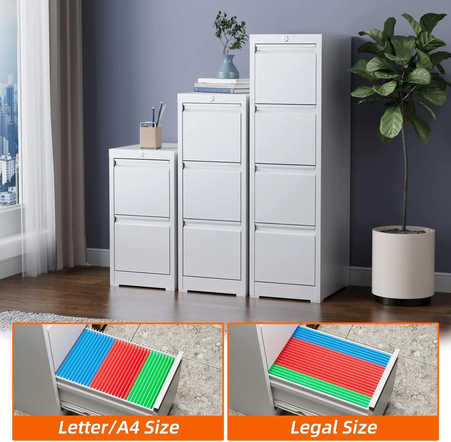 Vertical File Cabinet,Office Files Storage Cabinet ,Filing Cabinets for A4 Letter/Legal Size,14.96″ W x 17.72″ D x 28.3″ H