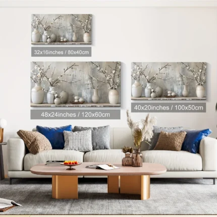 Framed floral canvas wall decor – Simple white plum vase insert Minimalist aesthetics Suitable for living room Office Decoration